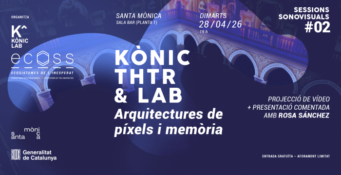 En aquesta sessió es presenta una selecció de videocreacions destacades de projectes de mapatge arquitectural realitzats per Kònic Thtr & Lab, acompanyada d’una presentació comentada a càrrec de Rosa Sánchez