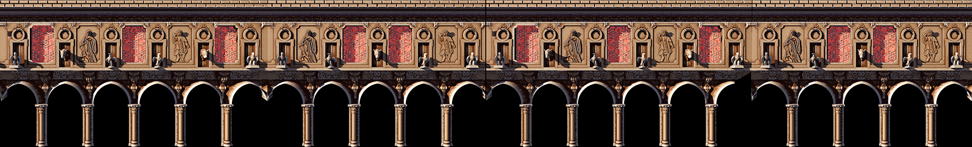 TIMESCAPE INTERPLAY is an architectural immersive videomapping, created for the four caçades of the cloister of the Fine Arts Academy in Lecce (Italy).