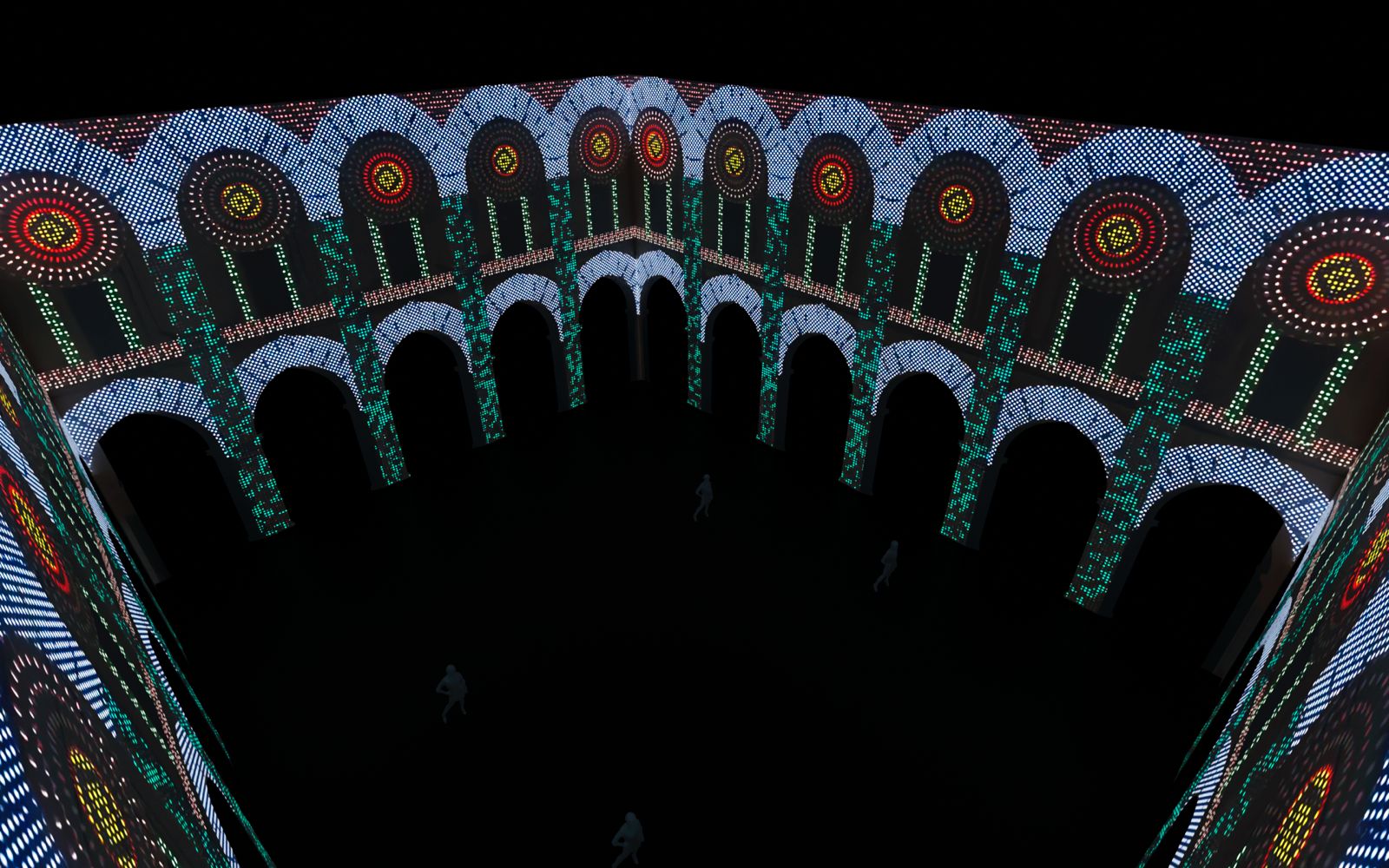 Past and present intertwine, resonating into a poetic interaction between architecture, memory and digital art.